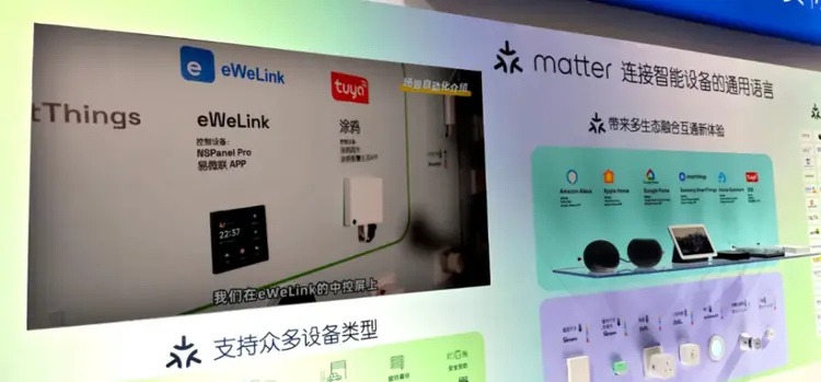 易微联作为Matter标准的关键参与者,其卓越的方案产品在体验馆中备受瞩目。易微联的Matter解决方案在助力智能家居品牌推出认证产品方面表现出色。例如,SONOFF智能开关在馆内大放异彩,它不仅成功融入苹果、三星等国际大品牌的生态系统,还能够与多个不同品牌的智能设备紧密协作,共同构建出流畅自然的智能家居场景以及自动化体验。