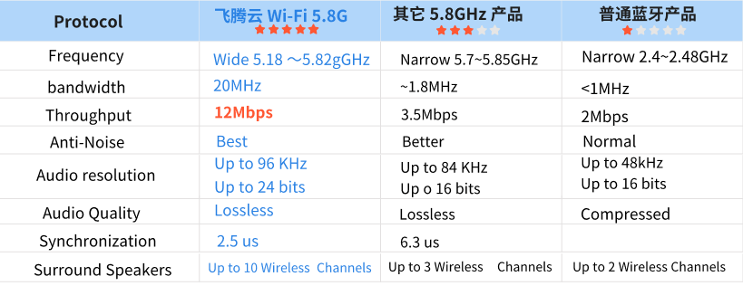 本Wi-Fi 5.8G无线7.1.2音响方案具备以下优势: